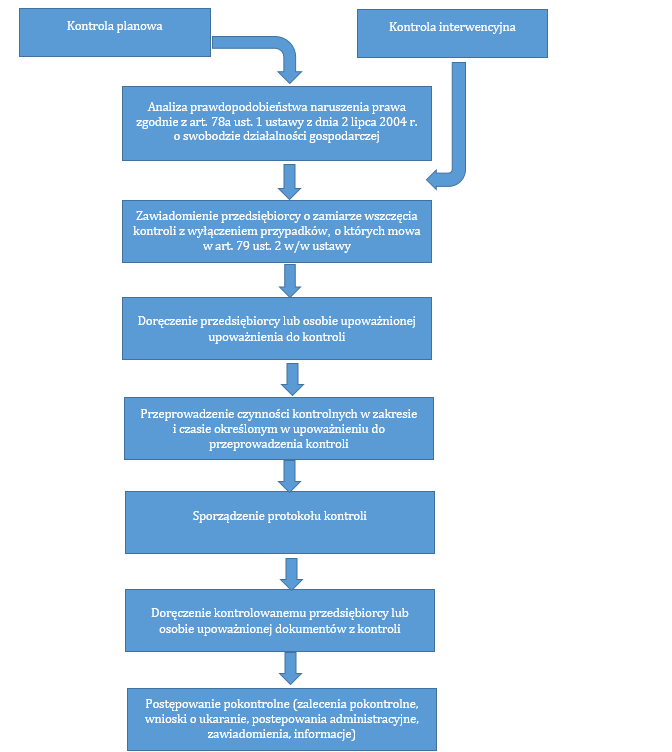 Art. 47 ust. 3 ustawy z dnia 6 marca 2018 r. Prawo przedsiębiorców (Dz.U.2019.1292 t.j. ze zmianami) stanowi, iż organ kontroli zamieszcza w Biuletynie Informacji Publicznej na swojej stronie podmiotowej ogólny schemat procedur kontroli, które wynikają z przepisów powszechnie obowiązującego prawa.